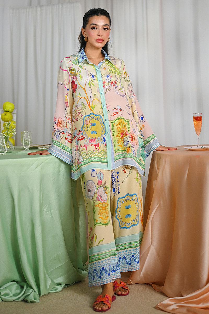 Embrace effortless elegance with 'Poesie' - a stunning co-ord set featuring a delicate lemon button-down...