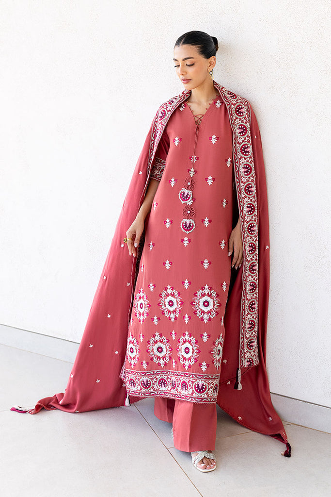SHIRT100% cotton satin embroidered front and sleevesDyed backTROUSERCambric dyed trouserDUPATTAStaple woolen printed dupatta