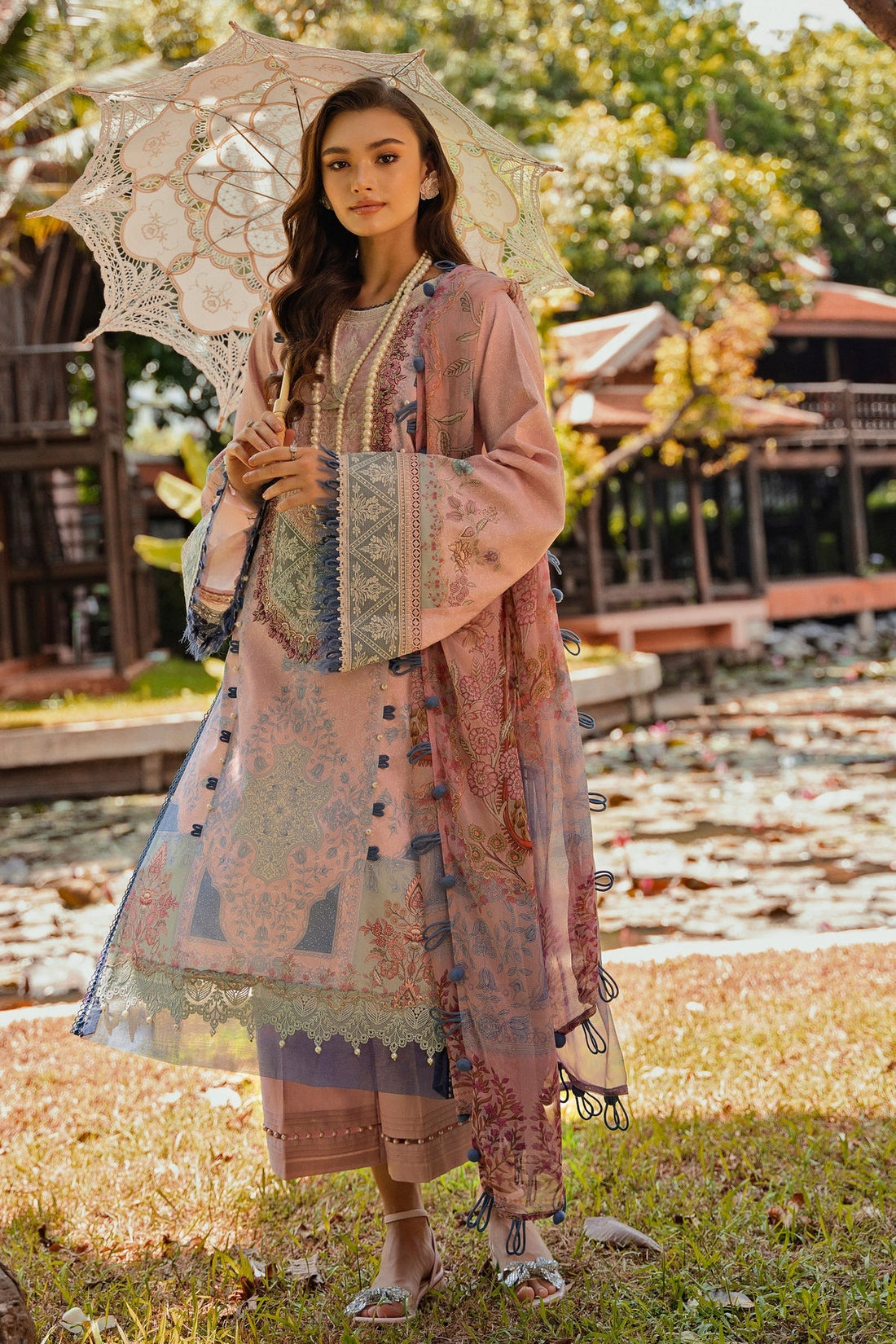 3M Embroidered Lawn Shirt2.5M Digital Printed Bamber Chiffon Dupatta2.5M Dyed Cotton Trouser1PC Organza Embroidered Daman...