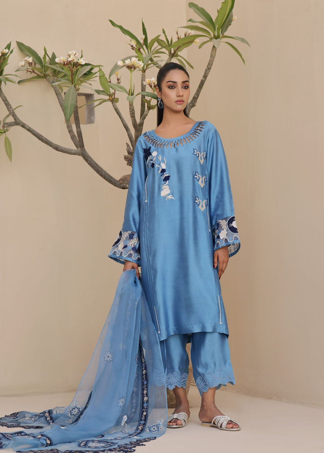 Elevate your wardrobe with Mona Imran's stunning embroidered ensemble, a masterpiece that seamlessly blends traditional...