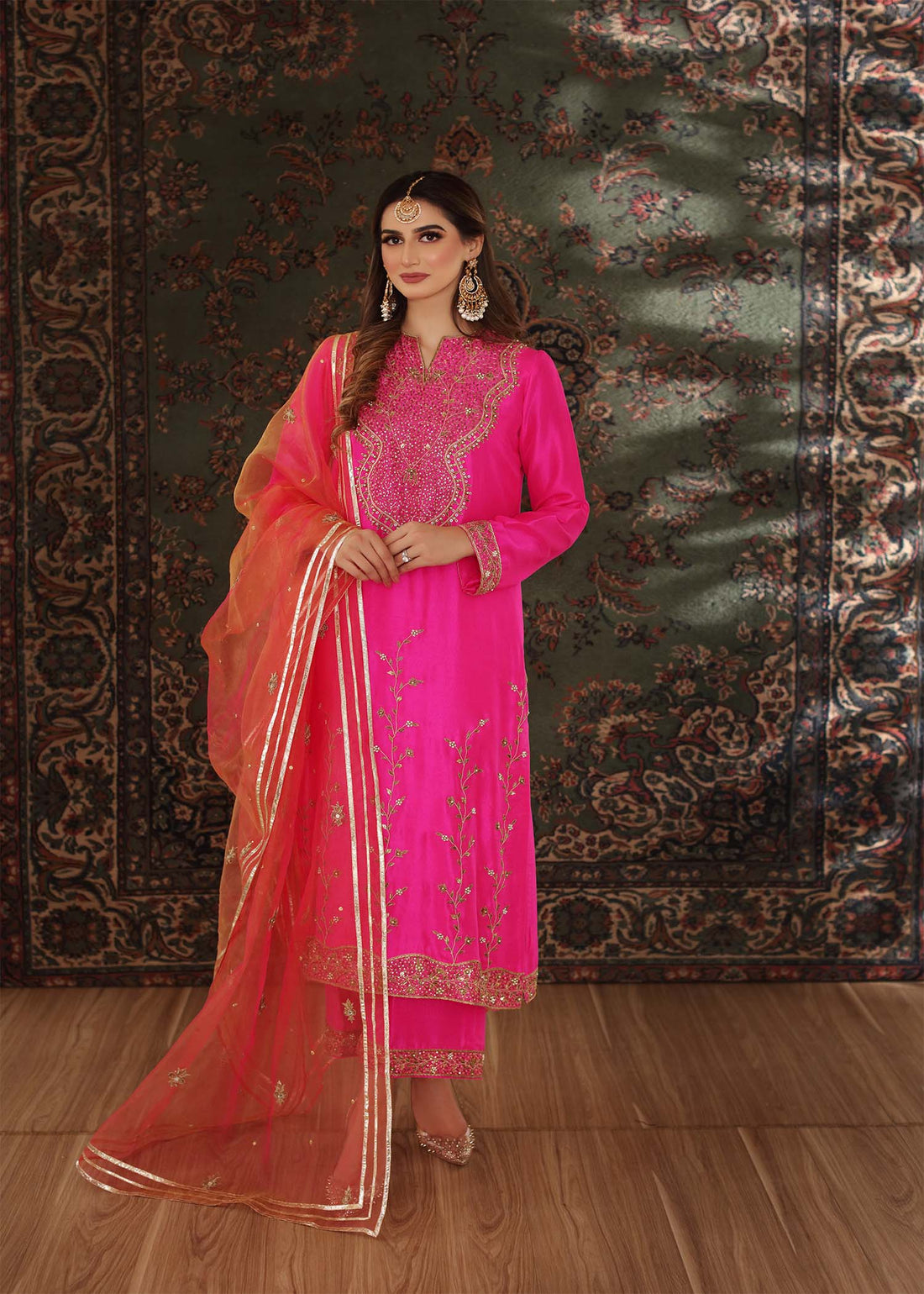 Dyed Raw Silk FrontSequins Embroidered Neckline on Organza Sequins Embroidered Front Border on Organza Dyed Raw Silk...