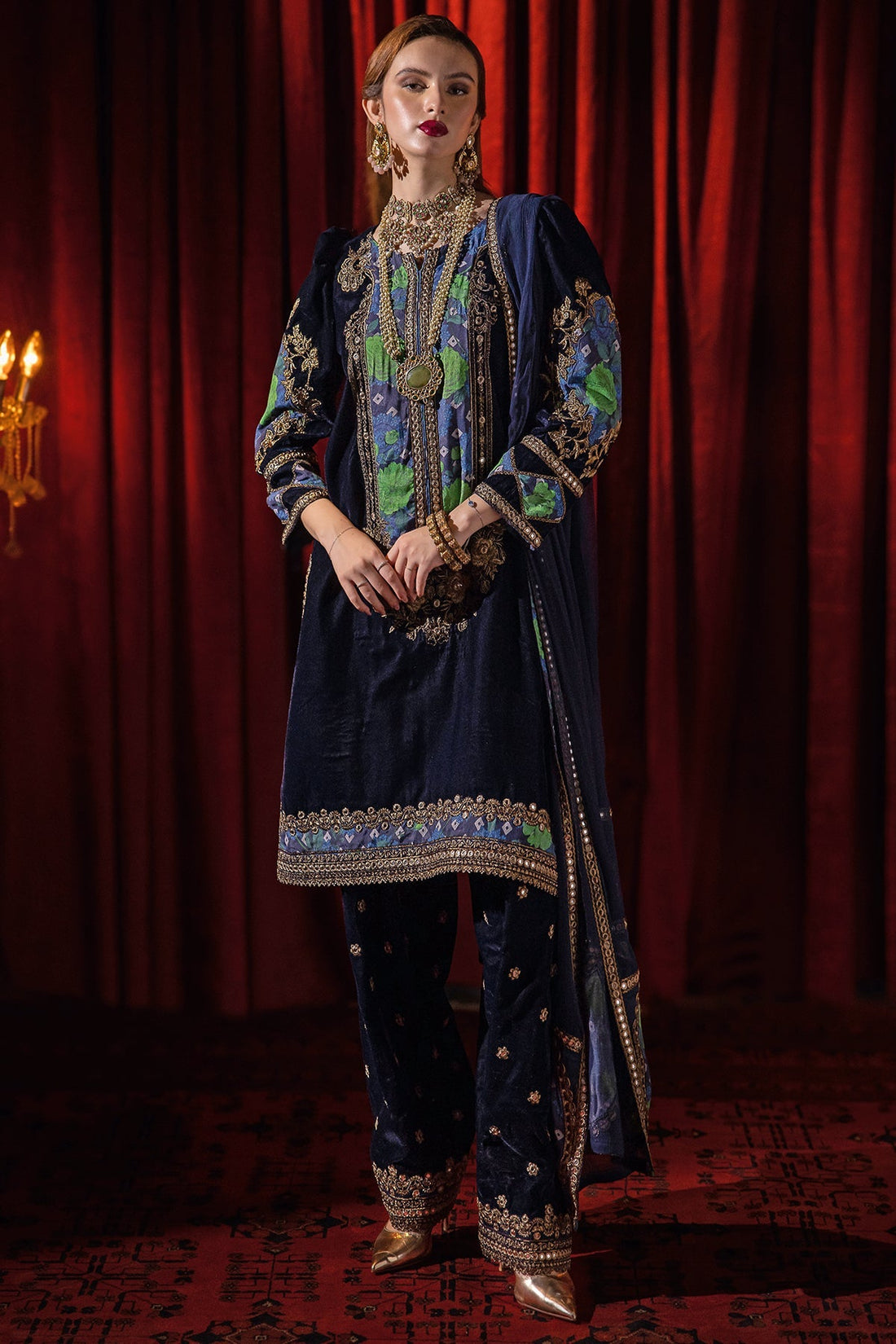 Gender: Women Color: Blue Product Type: 3 Piece Shirt Fabric: Velvet Dupatta Fabric: Velvet Trouser...