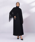 Full-length abaya in a soft drapey fabric. Full sleeves. Round neckline with button opening.