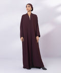 Front open abaya in crinkle fabric with kimono sleeves and tapered cuffs. Hijab included.