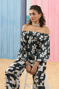 Digital printed set Includes an off-shoulder shirt and straight pants Crease Silk fabric produced in-house Suitable for summe.