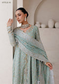 Shirt: Embellished + Embroidered Organza Neckline Embroidered Chiffon Front x 2 Embroidered Organza Neckline Finishing Embellished + Embroidered Organza Front Border x2 Embroidered Chiffon Back Embroidered Organza Back Border x2 Embroidered Chiffon Sleeves Embellished + Embroidered Organza Sleeves Border Pants: Jamawar Pants Embroidered Tissue Trouser Border Dupatta: Embroidered Chiffon Dupatta Embroidered Organza Dupatta Border STYLE 01: ANGRAKHA WITH SKIRT STYLE 02: KALIDAR OPEN FRONT WITH FARSHI GHARARA.
