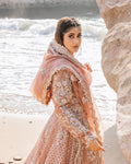 We offer a matching organza embroidered lehnga. This lehnga boasts a captivating design with back and front korian raw silk borders, adorned with heavy handcrafted adda work. The embellishments include pearls and naqshi dabka, enhancing the overall allure of the attire