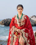 Chiffon embroidered dupatta, exquisitely enhanced with heavy handcrafted adda work. The dupatta boasts four-sided kiran laces, adding a touch of elegance and charm.
