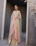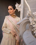 Net embroidered maxi enhanced with hand crafted adda work,Net embroidered dupatta enhanced with pearls and gotta pati spray,Viscose, trouser,Optional fabric attached (For back round).