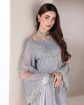 Stunning crinkle zari chiffon shirt, beautifully adorned with sequin embroidery, sparkling diamante pearls, and playful tassels. Elegant crinkle chiffon dupatta, featuring exquisite spangle embroidery and charming pearl embellishments Viscose palazzo pants, embellished with dazzling diamantes
