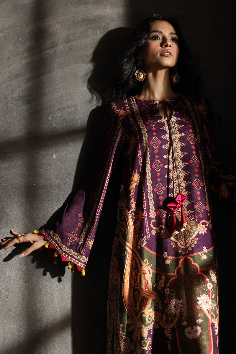A velvet kaftan that celebrates color and craftsmanship, featuring vivid multicolor prints with subtle embroidery detailing along the neckline.