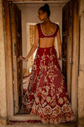 "MEHAK"; consists of a paneled lehnga exquisitely hand embroidered and embellished with dabka, gotta, 3d embellishments. petaled crystals and glass beads. It comes with an embellished short blouse that can be customized in longer length too. The outfit is further\npaired with a fully embellished dupatta with a four-sided border.
