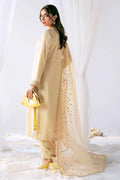 Brings a modern charm to your festive wardrobe with its classy beige shade and a flowy cutline. The georgette fabric is enhanced with dull gold polka dots all over the shirt and graced with heavily embellished neckline and sleeves. Accompanied with an organza pronted dupatta and straight pants.