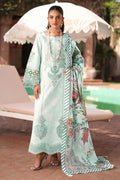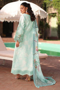 €œMirega€� showcases a tranquil blue floral print, beautifully illustrated in soft monochromatic tones that evoke calm and grace. Delicate cutwork and floral organza patches add refined texture and depth to the design. Paired with a lightweight printed silk dupatta, this ensemble embodies the perfect harmony of understated elegance and timeless simplicity.