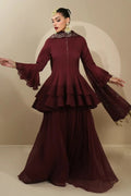 Alizeh | Formals Collection | Maroon Peplum 3 piece - RTW1014