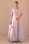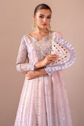 Parinaaz is a captivating blend of traditional and modern styles, featuring pastel hues in a stunning lilac and powder pink dress. The embroidered bodice and sleeves are beautifully adorned with sequins and embroidery work. This ensemble is paired with a shaded chiffon dupatta, showcasing detailed embroidery, and tonal raw silk trousers.