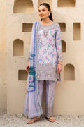 Flake is a soft lilac masterpiece, featuring stunning floral embroidery on both the front and back, complemented by a delicate embroidered organza patch with intricate motifs. This look is completed with a digitally printed chiffon dupatta and paired with simple, plain trousers for a refined and elegant finish.