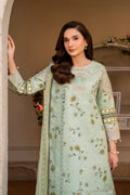 In a refreshing mint green, "Mintel" displays exquisite floral embroidery on a digitally printed lawn base, complemented by beautifully embroidered borders and sleeves. This ensemble radiates sophistication and elegance, paired with printed lawn trousers and a lawn dupatta featuring embroidered borders.
