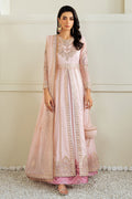 €œIzna€� is an exquisite premium chiffon pastel pink ensemble adorned with intricate gold embroidery and shimmering details adding a contemporary twist, while the embroidered chiffon dupatta and raw silk tonal trousers, adorned with delicate floral motifs, perfectly complete the look.