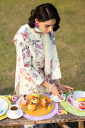 €œMinday€� is a stunning vision in white and soft purple hues. This floral digital printed shirt is paired with a printed lawn trouser and a chiffon dupatta, creating an effortlessly elegant look in motion.