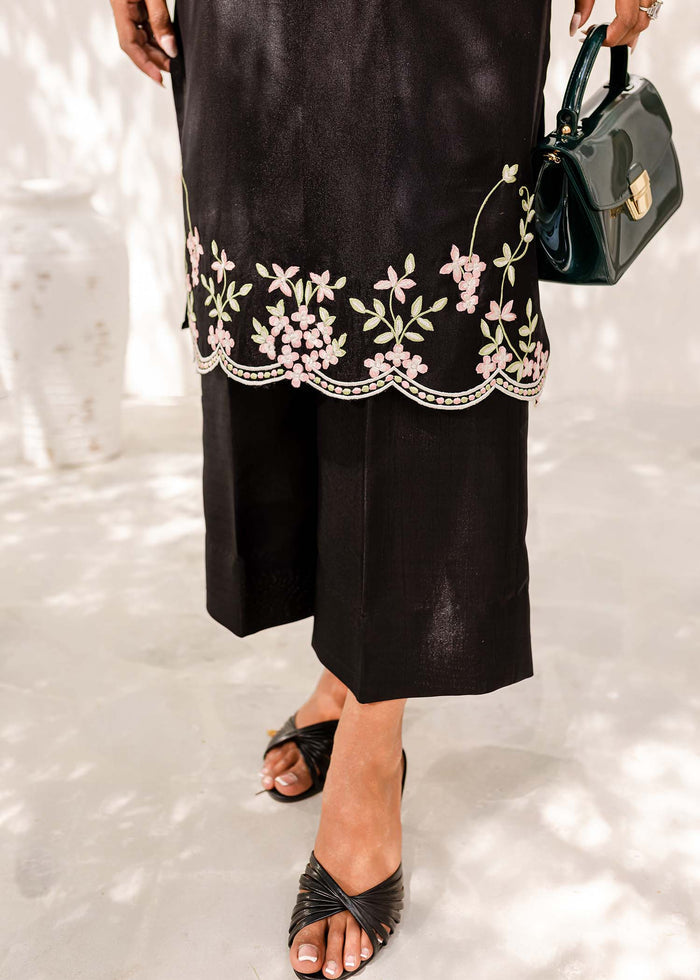 Celebrate festivities in style with this showstopper, Azure. This 3 piece silk set is graced with embroidery that adorns its neckline and hems. Allow yourself to be enfolded in the embrace of timeless elegance and serene refinement.
