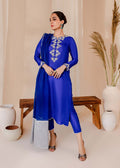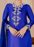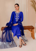 This striking blue matching separate has intricate embellishment in silver Dabka, nakshi, and pearls. The similar details on the sleeves make it more appealing. It is paired with an Organza Dupatta with silver blocks on the edges, providing the perfect finishing touch.