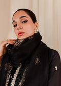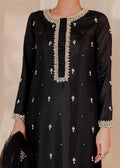 This graceful solid Black silk set is exquisitely designed to create an elegant look. It is delicately embellished with dainty white pearls, golden sequins, cut dana, pearls, and stones. Paired with a Block printed organza dupatta to complete the look!