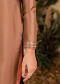 A chic outfit perfectly for all your celebrations. Exceptionally hand worked with stones, crystal, sequin and nakshi. Roma is paired with flared pants in rose pink color and an organza dupatta to complete the look.