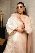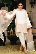 Elevate your style with this charming nude pink and ivory colorblock short shirt in pure raw silk, meticulously detailed with aari embroidery. The shirt features a contemporary color contrast that blends delicate nude pink with elegant ivory, creating a visually striking and sophisticated effect. Â This stylish shirt is paired with a classic shalwar that complements the color scheme, offering a balanced and graceful silhouette. The ensemble is completed with a dupatta crafted from luxurious organza, featuring pintuck details and lace embellishments. Â Opt for delicate gold or rose gold drop earrings with minimal embellishments to keep the focus on the aari embroidery and colorblock design.