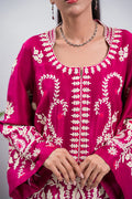 Colour of the season , Raspberry , a perfect pop from day to night . A raw silk shirt with aari embroidery and chic collar cut is a vision of timeless elegance and modern sophistication. With its luxurious fabric, intricate detailing, and contemporary design, it exudes charm and grace, making it the perfect choice for any special occasion or celebration. Whether dressed up or down, this ensemble is sure to make a lasting impression. Bind this look with an elegant neckpiece and studs! Duppata can be added in organza