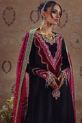 A-Line silhouette long shirt cut on pure silk canvas featuring velvet applique details on neckline. The neckline is further adorned with antique and gold zardozi details featuring handcrafted jewel ornament. The sleeves are adorned with cutwork and dangling tassels details. The shirt is accompanied by crushed two legged dhaka featuring old school gota trimmings. The net colour blocked sequins dupatta is adorned with sequins all over finished with zari borders in contrasting shade of green.