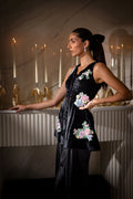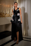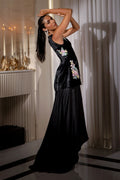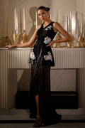 This black velvet jacket is a masterpiece of craftsmanship. Embroidered with intricate floral motifs and adorned with delicate handwork, it exudes an air of sophistication and elegance. The jacket pairs seamlessly with a flowing black silk sarong skirt, creating a harmonious ensemble that is both timeless and effortlessly stylish.