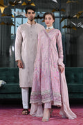 Our signature dusty pink Kalidar, exquisitely crafted with delicate lace detailing and ornate borders. Paired with a luxurious silk dupatta, adorned with lace borders, and complemented by perfectly tailored straight pants. A harmonious blend of elegance and timeless sophistication.