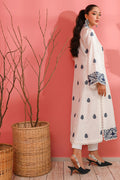 This beautiful pure raw silk ensemble in shades of white and navy blue is rendered with lace details and ari embroidery. The neckline and borders are embellished with intricate embroidery detailing. Paired with our white pure raw silk trousers and the beautiful digital printed silk dupatta with lace detailing completes the look.