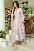 Lavender raw silk kurta with a laced izaar paired with an organza dupatta.