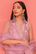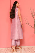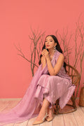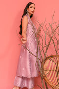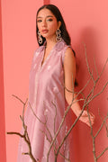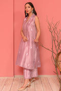 This lavender fog sleeveless pure raw silk kurta exudes elegance with floral ari embroidery and schiffli detailing on the collars. The look is completed with matching trousers and an organza dupatta with lace detailing.