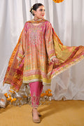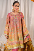 This exquisite ensemble showcases a stunning purple ombre short kurta featuring intricate embroidery details. The accompanying raw silk khari shalwar boasts block print and embroidery for added sophistication. A digitally printed dupatta, adorned with chan and gota details, completes the look. The perfect blend of traditional craftsmanship and modern design.