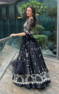 - Embroidered sequined Front/Back body on dyed chiffion.