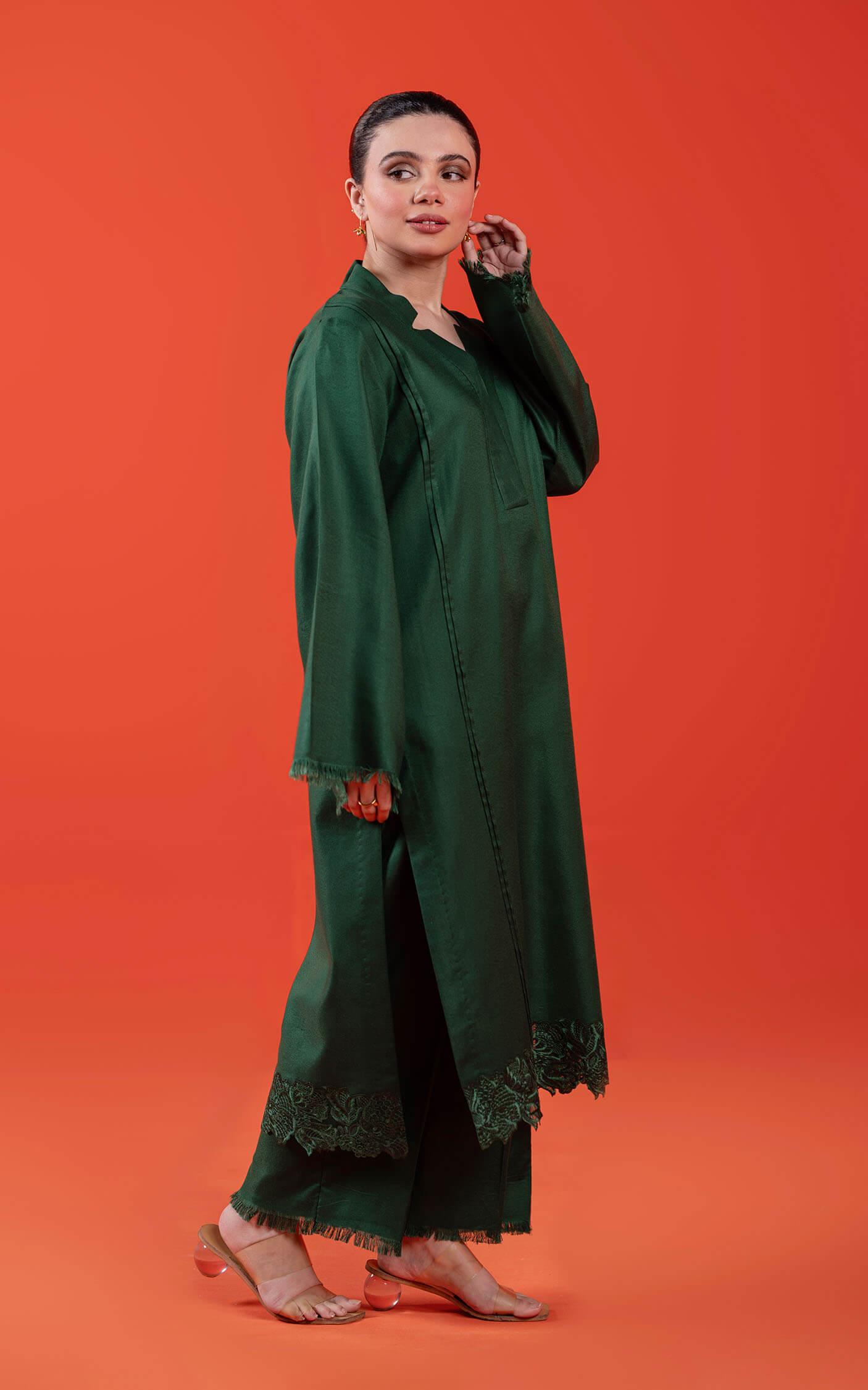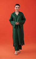 Straight lose fit Dobby shirt with rich emerald green detailed border with green straight pants.