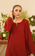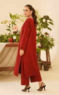 This stunning two-piece embroidered set features a round neckline and straight sleeves, showcasing elegant embroidery details on the pockets for a touch of sophistication.