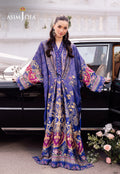 Step into chic sophistication with this royal blue digitally printed kaftan, adorned with intricate traditional print that echoes the charm of cultural heritage. The neckline, beautifully embroidered with fine detailing, serves as a focal point of elegance, while the embroidered sleeves and borders bring an air of opulent artistry. This kaftan stands as a complete ensemble, offering a refined yet bold choice for festive celebrations or formal evenings.