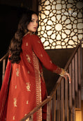 Rooted in tradition yet refined with modern grace, this dark rust ensemble evokes the warmth of heritage. The shirt is adorned with gleaming gold zari and sequins, intricately embroidered with rust and sage-hued threads that echo the earthy richness of the design. Paired with a softly embroidered dupatta that adds just the right touch of detail, this ensemble feels like a modern beauty worn with pride.