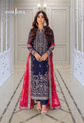 Step into the limelight withJag Mag Collection� by Asim Jofa. This navy-blue masterpiece is a testament to the grandeur of celebrations adorned with a majestic floral border that blooms in the hues of reddish-pink, gray, and dull mauve threadwork. The light gold sequins and zari embroidery weave a narrative of opulence while the reddish-pink dupatta embroidered on both sides adds a vibrant dimension to this luxurious ensemble. Embodying the spirit of the collection, this outfit promises to keep you radiant from dawnss subtle glow to duskss vibrant hue.