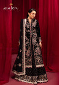 Cloaked in the ethereal splendor of a velvety night sky, this black ensemble is a masterpiece of timeless elegance. The front-open velvet jacket-style shirt is a canvas of intricate embroidery, where delicate hues of tea-pink and beige threadwork weave a poetic harmony with shimmering light gold zari and glistening cupped sequins, evoking the sparkle of starlight. The lehenga, adorned with minimal yet graceful embroidery, is a vision of understated luxury, its finely embroidered border adding the perfect touch of refinement. Completing this regal attire is a dupatta adorned with scattered floral motifs, each bloom whispering a story of grandeur. Together, this ensemble exudes an aura of royal magnificence, leaving an indelible impression of sophistication and charm.