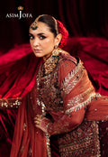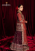 Draped in the divine harmony of coral and maroon, this ensemble is a masterpiece steeped in regal splendor. The coral shirt on velvet, paired with a luxurious silk waistcoat, becomes a vivid tapestry of artistry, adorned with intricate embroidery that showcases shimmering 5mm light gold cupped sequins and rich threadwork in coral and maroon, gracefully entwined with two-toned mink zari, a true symphony of craftsmanship. The maroon lehenga, with its exquisitely embroidered heavy border, radiates timeless allure, while the net dupatta, adorned with delicate embroidery, adds an air of understated grace. Together, this ensemble is a poetic ode to artistic opulence, painting a portrait of elegance fit for royalty.