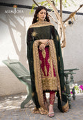 Stand out in a crowd with Asim Jofa's latest collection - 'MERA HASEEN JORA' in a bold and striking ruby hue. The ensemble is crafted from luxurious raw silk, boasting intricate zardozi embroidery inspired by timeless Mughal motifs. But it's the emerald dupatta that truly elevates the look with its delicate sheen and elegant draping. The ensemble has already been spotted on the ever-so-elegant Syra Yousuf, radiating an unparalleled allure. Don't miss out this chance to add some 'HASEEN JORA' to your wardrobe and stay voguish all season long.