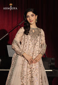 A masterpiece of elegance, this pink ensemble is crafted in a double princess-cut style with multiple intricately embroidered panels. The opulent embroidery on Zari Net Ayudhia showcases a harmonious blend of two-toned antique gold zari, shimmering light gold sequins, accompanied with sage green and brownish-pink threadwork. The trousers are adorned with a finely embroidered border at the hem, adding a touch of refinement. Paired with a gorgeously embroidered dupatta, this ensemble is a true celebration of timeless yet regal beauty.