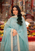 Emerge as your most radiant self with this enchanting mint blue ensemble, a masterpiece for your inner glow. The delicately embroidered shirt blossoms like a garden in spring, each stitch a burst of vibrant hues against the soft mint blue fabric. Shimmering like morning dew on petals, gleaming light gold sequins glisten across the fabric, while two-toned antique silver zari work adds a touch of sophisticated charm, combined with an embroidered border to enhance design details. Accompanied by a stunningly embroidered dupatta, adorned to complement the shirt, completing the look that redefines this ensemble's grace.