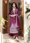 Mawra Hocane looks resplendent garbed in this elegant attire.Deep shade of plum is encrusted by heavy thread work with a touch of spangles making this design a coveted addition to your wardrobe. It comes with chiffon dupatta trimmed with embroidered borders & same hued pants.