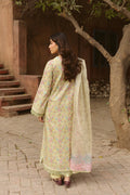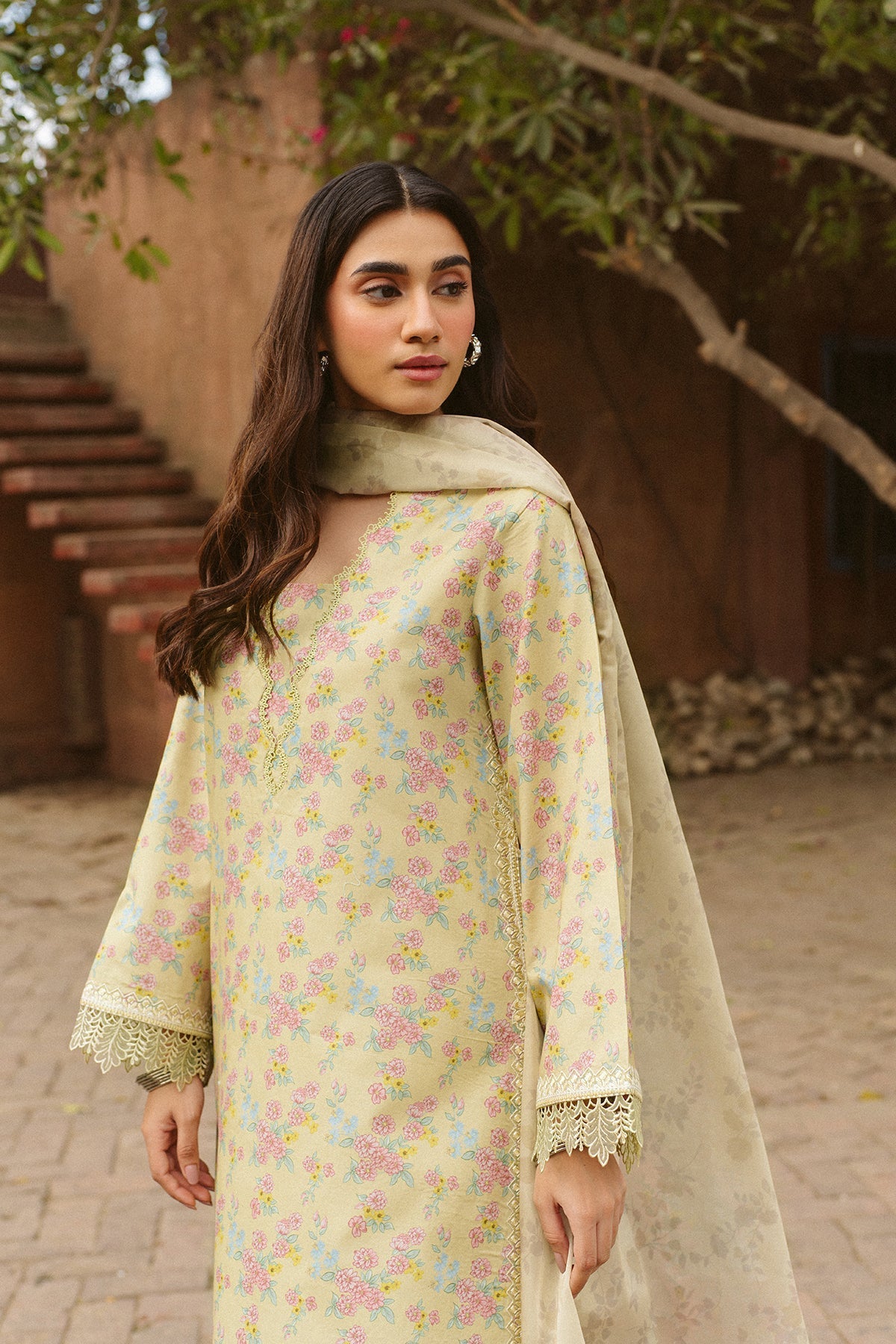 Delicate florals bloom on light, airy lawn, crafting an ensemble that embodies effortless grace. breezy digital printed silk dupatta flows with movement, complementing the ensembless ethereal charm. Paired with breathable cotton cuoltte for all-day ease, this look is perfect for twilight summer gatherings